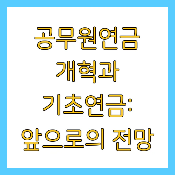 공무원연금 개혁은 기초연금 제도에도 영향을 미칠 수 있습니다. 연금 개혁으로 공무원연금 수령액이 변동될 경우, 기초연금 수급 자격에도 변화가 생길 수 있습니다. 향후 연금 제도 변화를 주시하고, 관련 정보를 꾸준히 확인하는 것이 중요합니다.