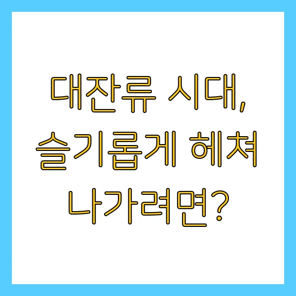 대잔류 시대는 단순한 사회 현상을 넘어 우리의 삶과 미래에 큰 영향을 미치는 중요한 변수입니다. 변화하는 시대의 흐름을 정확하게 파악하고, 꾸준한 자기 계발과 외부 네트워킹을 통해 미래를 준비해야 합니다. 워라밸을 유지하며 심리적 안정과 건강을 지키는 것 또한 잊지 마세요. 지금의 선택이 미래를 결정합니다. 현명한 선택으로 대잔류 시대를 슬기롭게 헤쳐나가길 바랍니다.
