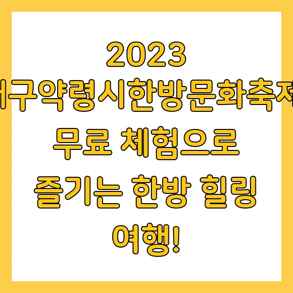 2023 대구약령시한방문화축제, 무료 체험으로 즐기는 한방 힐링 여행!